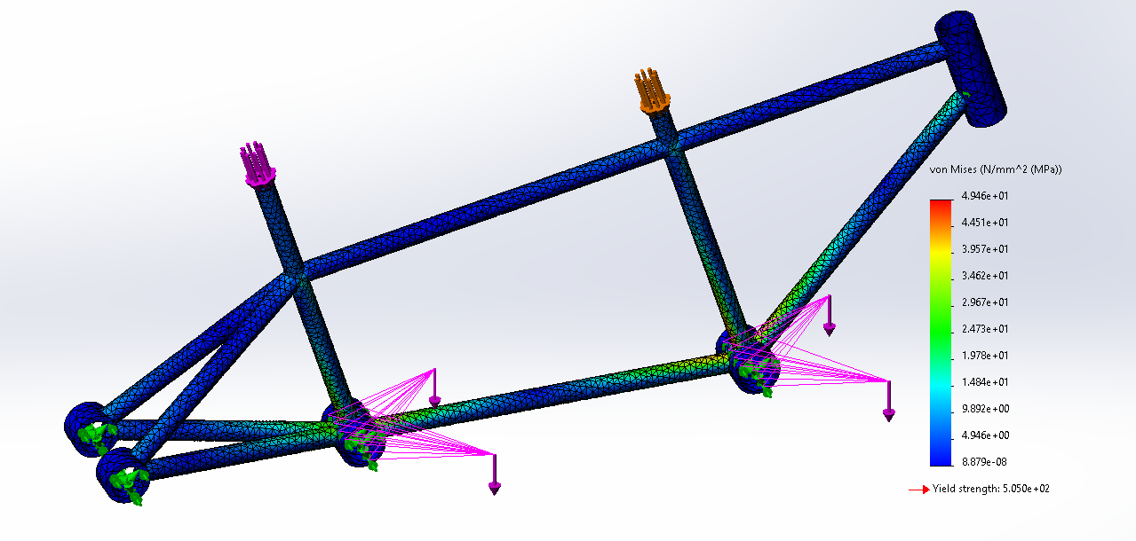 Using the Finite Element Method to design, model and simulate a tandem bicycle frame for adults, implementing an iterative design process. The design fulfill the following criteria: